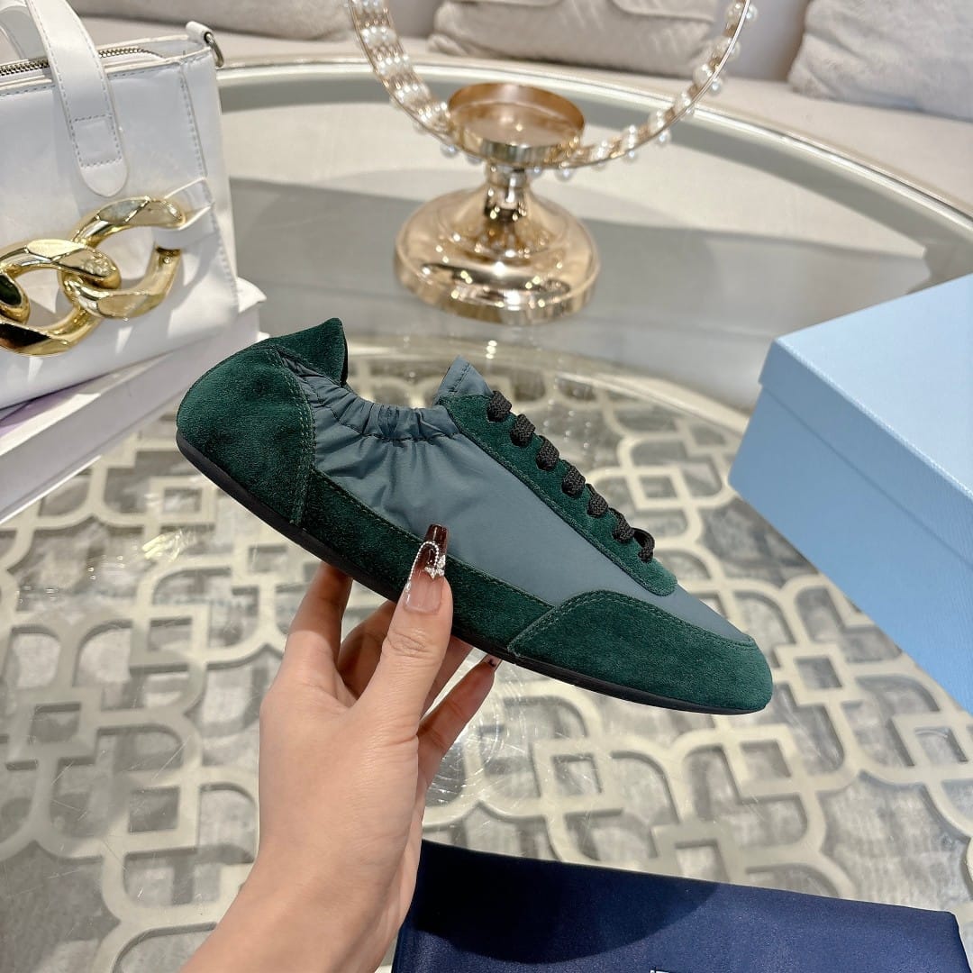 PRADA’s new early spring model, Made of mercerized suede, with cowhide hem and rubber outsole. Sizes: 35-40, Men’s 38-45.